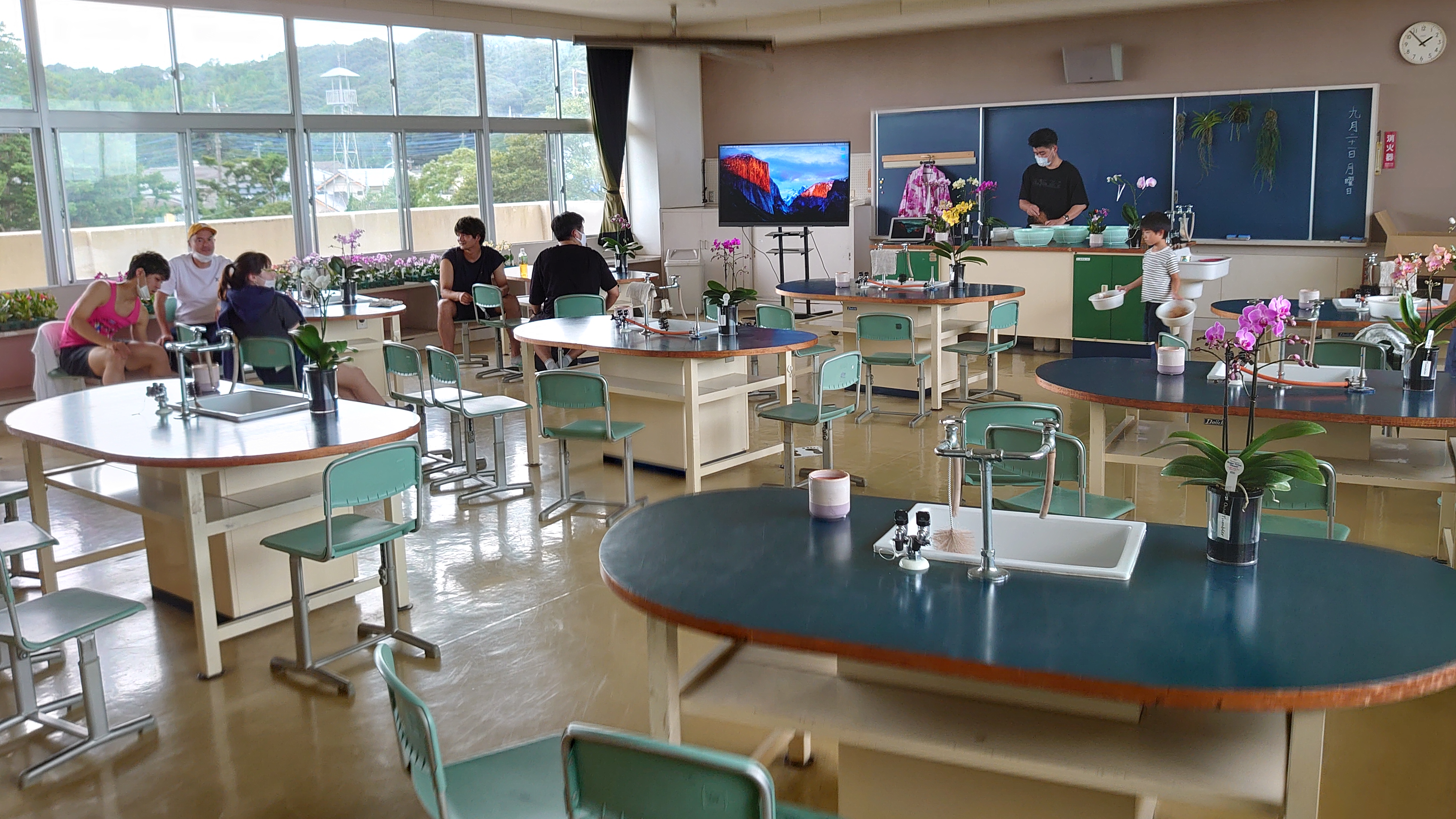大人40名まで収容可能な広々とした空間。円形実験台配置により、参加者同士のコミュニケーションを促進する理想的なレイアウトです。